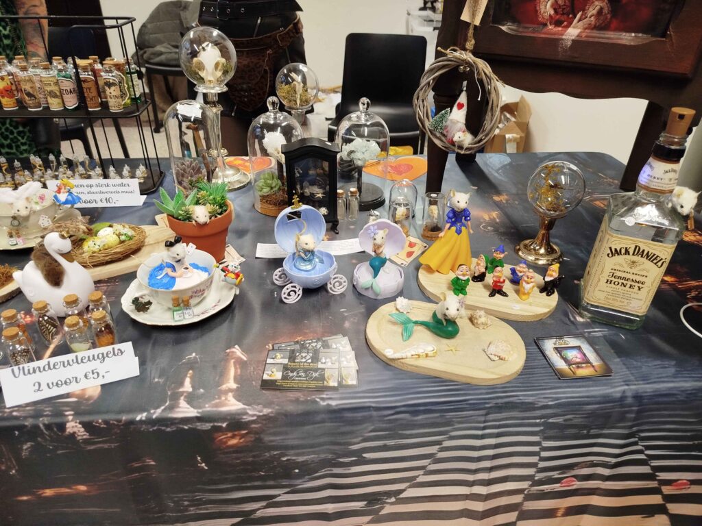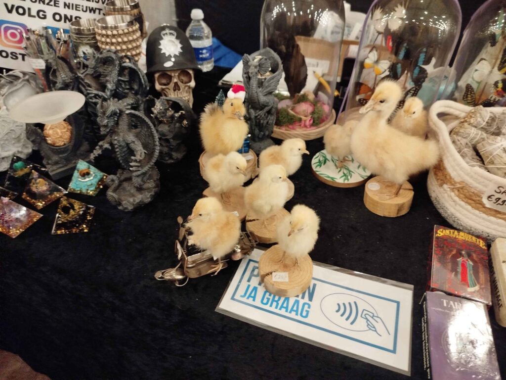 Zum weiteren Teil des Marktes kann ich gar nicht so viel beschreiben, Bilder sprechen mehr als Worte. Besonders beeindruckend fand ich Mothmeister, und sehr niedlich waren die ganzen verspielten Präparate mit Küken- und Mäuseköpfen, sowie Präparate, die aus verschiedenen Tieren zusammengestellt wurden. Zusätzlich gab einen Stand, der Präparate in Fantasy-Rollen verkaufte. Einfach genial!
