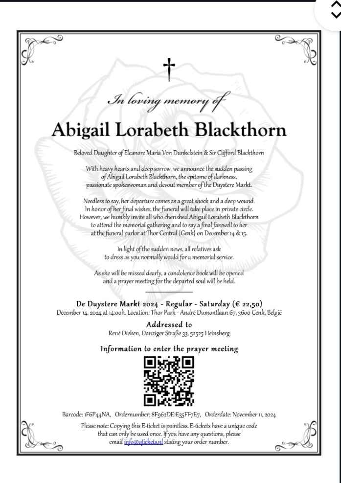 Nach dem ersten Teil des Marktes führte ein eindrucksvolles Exponat für die kürzlich verstorbene Abigail Lorabeth Blackthorn zum restlichen Teil.